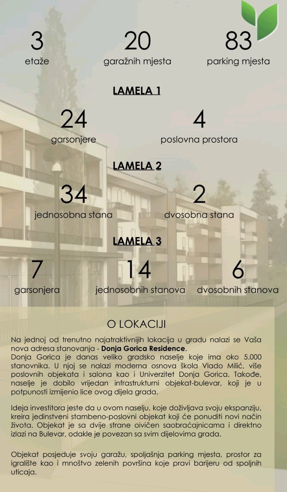 Projekat Donja Gorica Residence donosi savršen spoj udobnosti, funkcionalnosti i urbanog načina života.