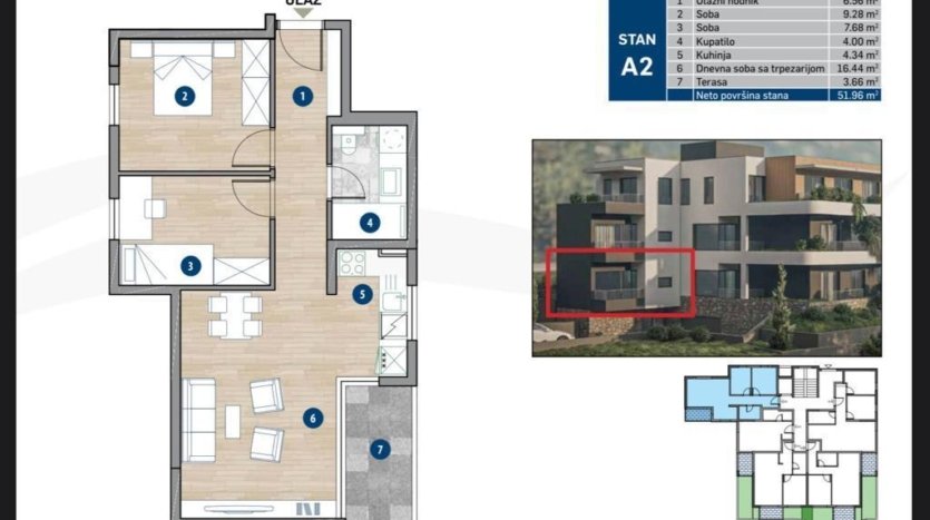 – Neto stambeni prostor: 51m2